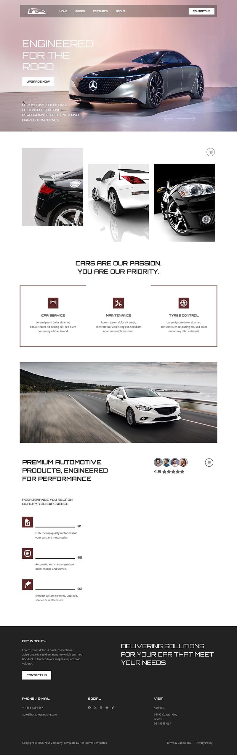 Whether you run a car dealership, motorsport brand, or auto repair service, the Joomla Auto template delivers a professional online presence. Modern design, easy customization, and seamless performance ensure your website works as hard as you do.