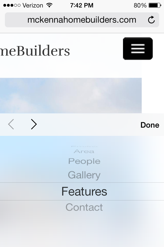 Attached are 2 snapshots displaying the site ZOOMED in when the tiny menu was clicked and website ZOOMED in when a menu item is selected. The snapshots are directly from an IPHONE. Thanks so much for addressing this issue. Your quick responses have been awesome. I can always give you admin access if you like.